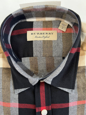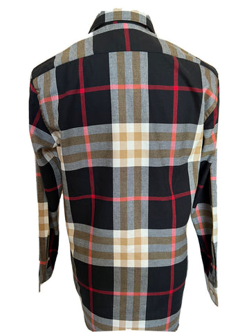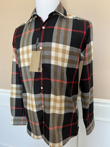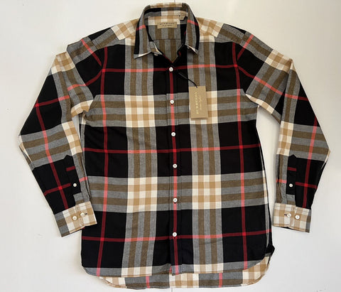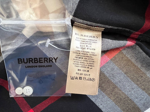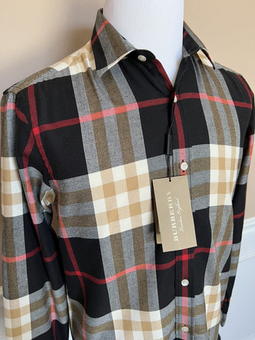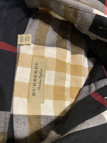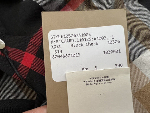 NWT $390 Burberry Men's Black Check Cotton Button-Up Shirt 2XL