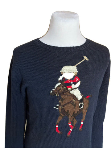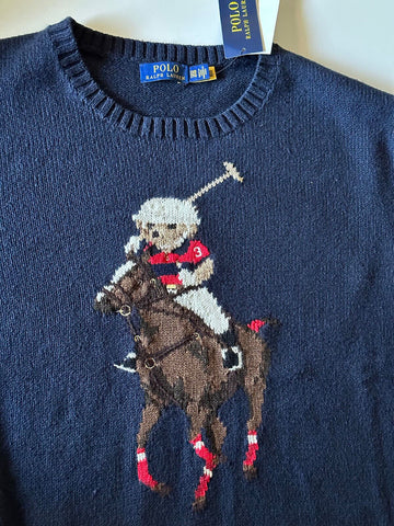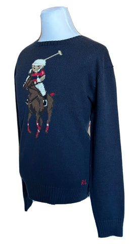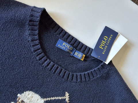 NWT $428 Polo Ralph Lauren Big Pony Bear Cotton/Linen Blue Sweater 3XB