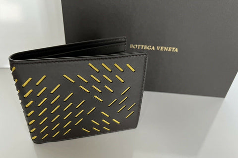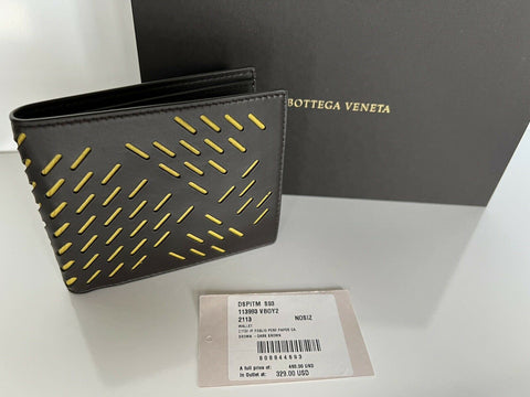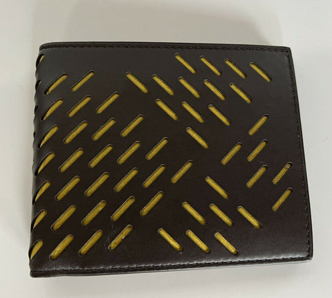 NWT $460 Bottega Veneta Perforated Leather BiFold Wallet Brown/Yellow 113993 IT