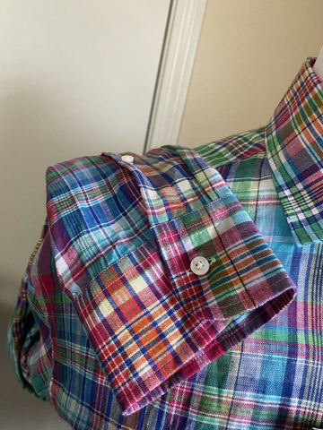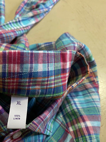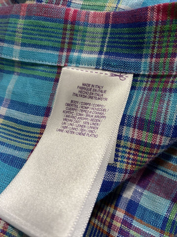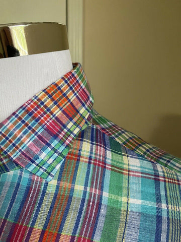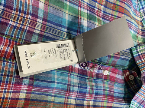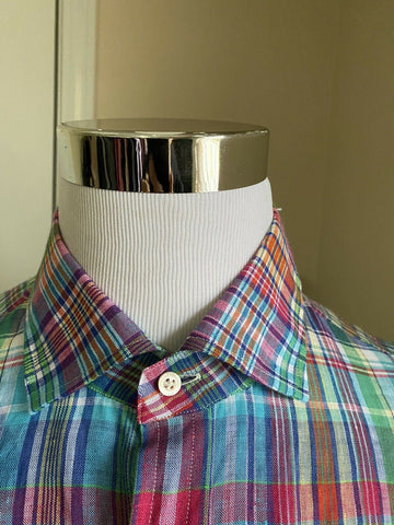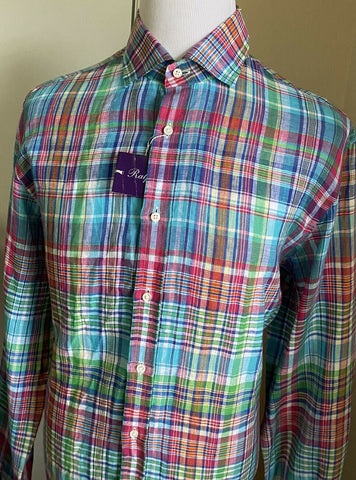 NWT $495 Ralph Lauren Purple Label Men Linen Shirt Blue/Red/Green XL Italy