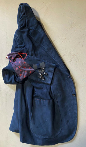 NWT $4995 Isaia Men Silk Suede Blazer Jacket Sport Coat Navy 44R US/54R Eu