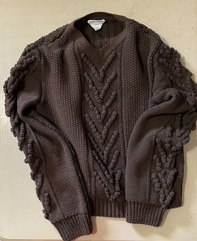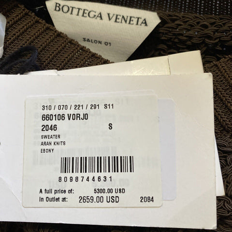 NWT $5300 Bottega Veneta Mens Aran Knits V Neck Sweater Color Ebony Size S