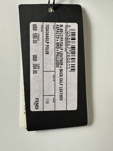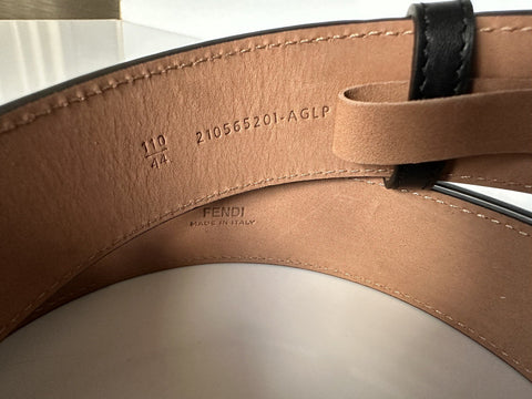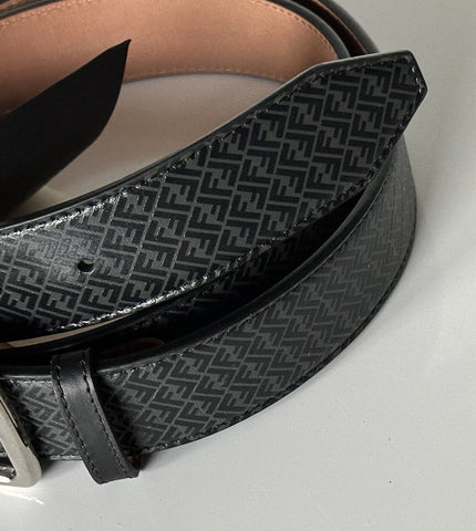 NWT $590 Fendi FF Logo Calf Leather Black/Grey Belt 110/44 Italy 7C0434