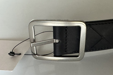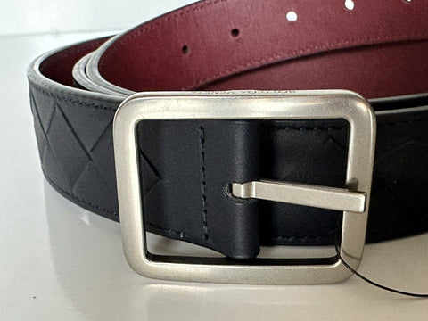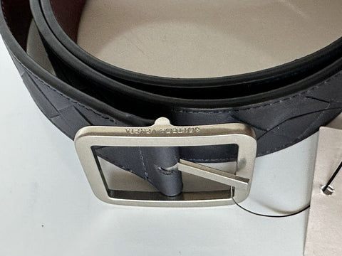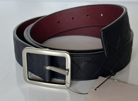 NWT $630 Bottega Veneta Intrecciato Nappa Leather Mid Blue Belt 38/95 IT 611392