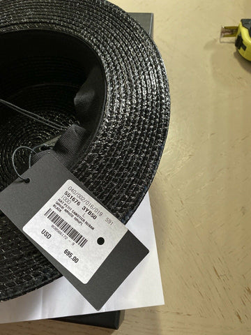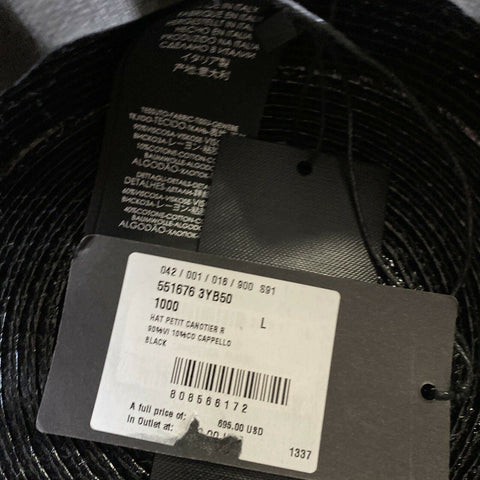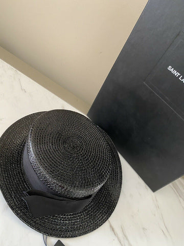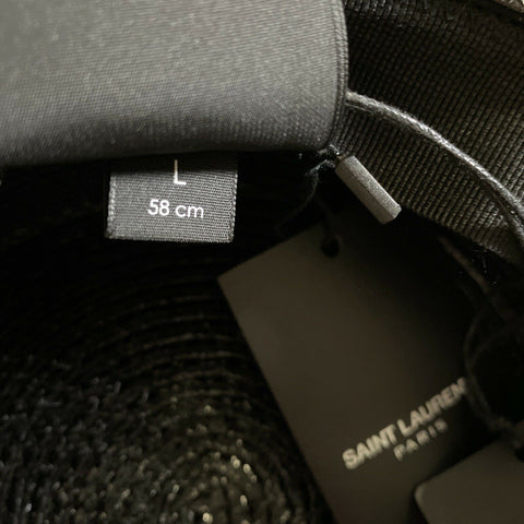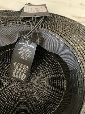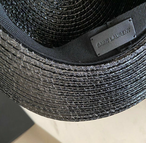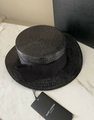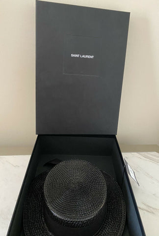 NWT $695 Saint Laurent Small Boater Hat In Varnished Straw Black L Italy