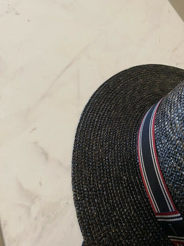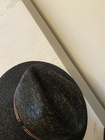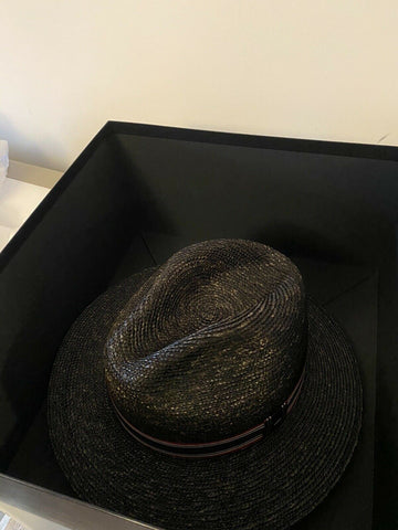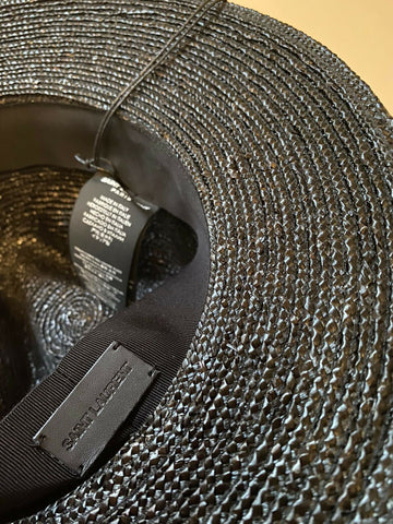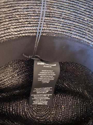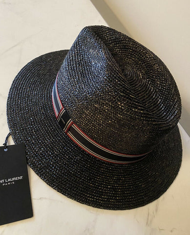 NWT $850 Saint Laurent Men’s Straw Fedora Hat Black/Silver XL Italy