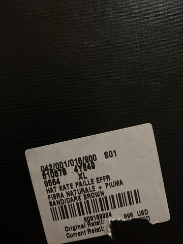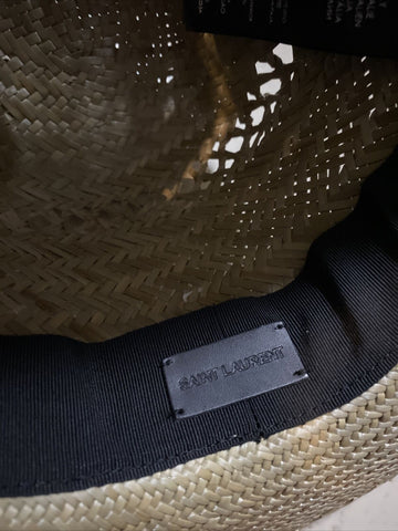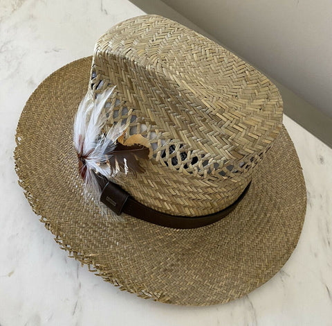 NWT $895 Saint Laurent Straw Cowboy Hat With Leather and Feathers Brown XL