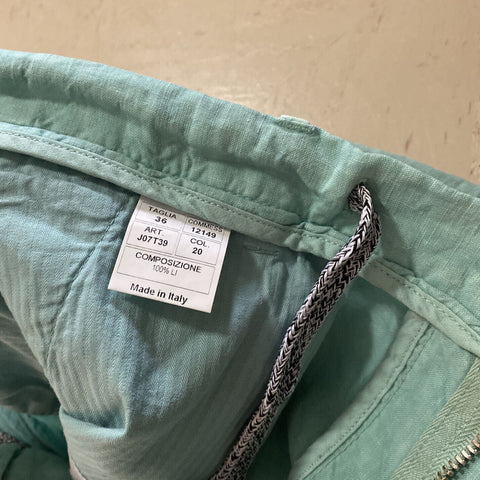 NWT $995 Kiton Mens Linen Short Pants Seafoam Green 36 US/ 52 Eu Italy
