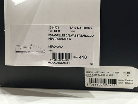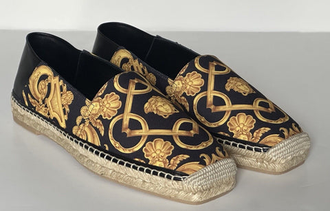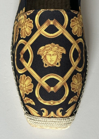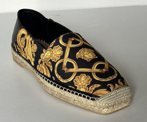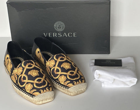 VERSACE Barocco Print Gold/Black Canvas Espadrilles 8 US 1014774 Spain NIB $700