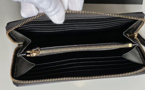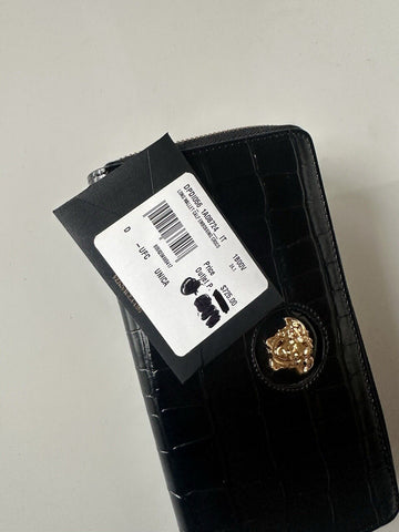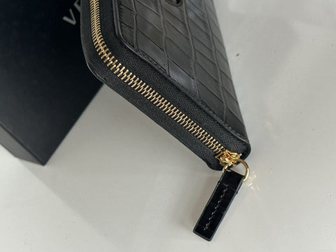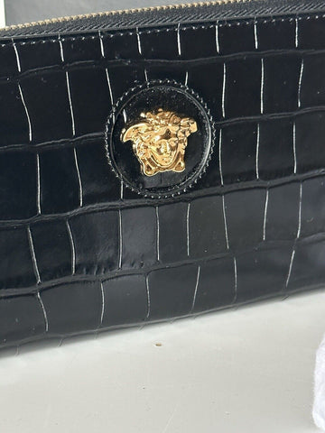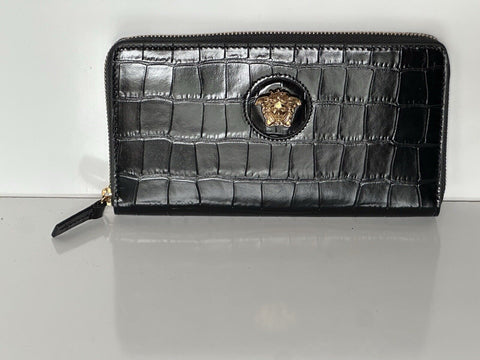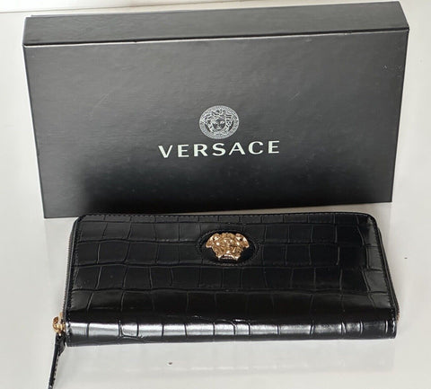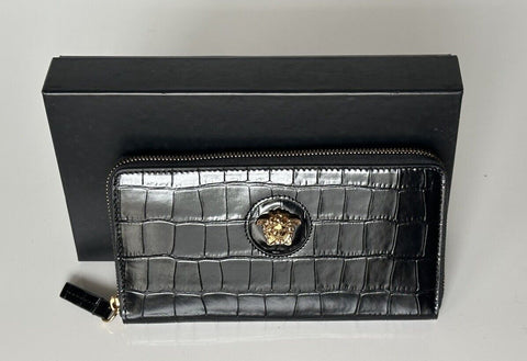 Versace Gold Medusa Head Black Leather Zipper Long Wallet IT DPDI056 NWT $725