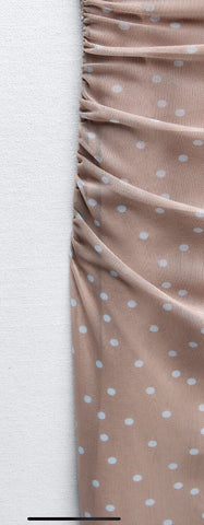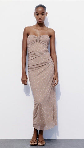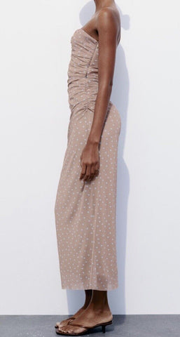 ZARA STRAPLESS PRINTED BEIGE TULLE MIDI DRESS NWT Size M