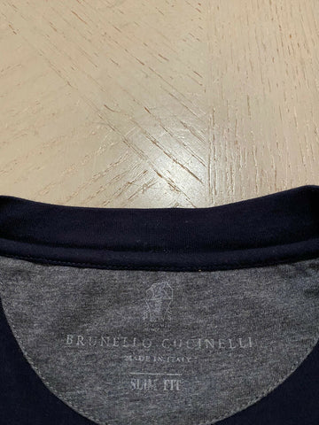 Мужская футболка узкого кроя темно-синего/серого цвета от Brunello Cucinelli, размер M, Италия, 495 долларов США.