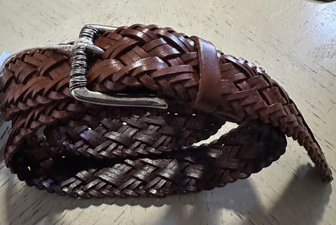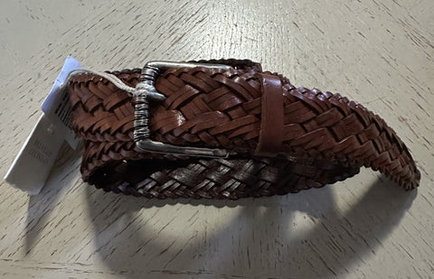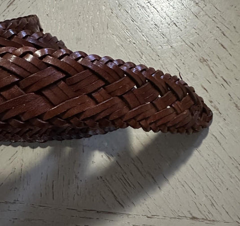 Brunello Cucinelli Men Braided Leather Silver Buckle Belt Brown 100/40 New $1250