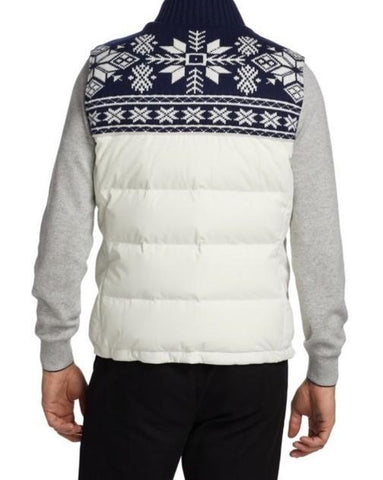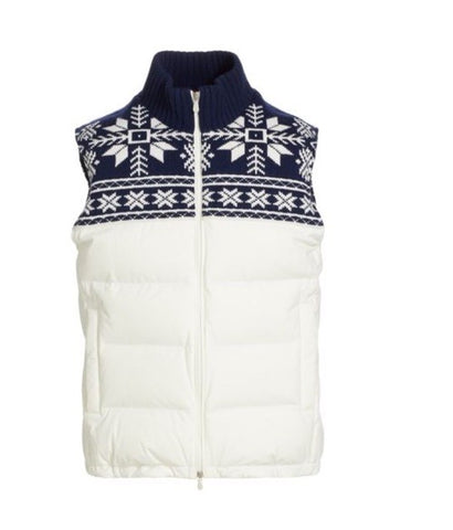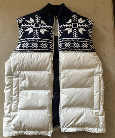 New $3350 Brunello Cucinelli Fair Isle Puffer Vest Gilet Navy/White Size S