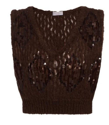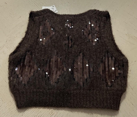 New $1950 Brunello Cucinelli Knit Embellished Cropped Sweater Vest DK Brow L