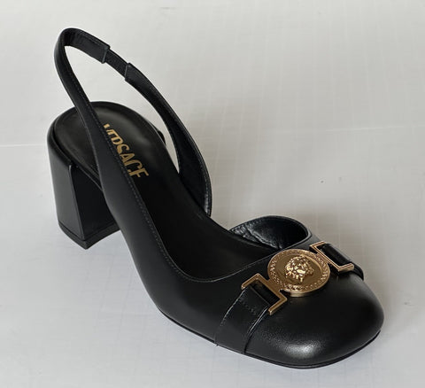 Versace Medusa Head Sling Back Calf Leather Black Shoes 7 US 1014619 NIB $1000