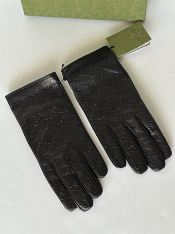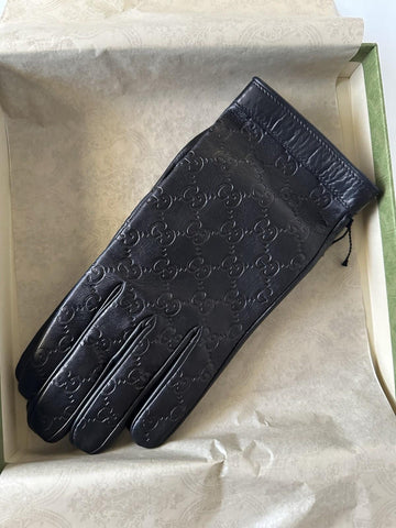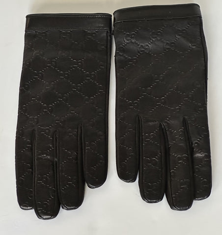 Gucci GG Women's Nappa Leather Gloves Black Size 10.5 Made in Italy 434211 NWT