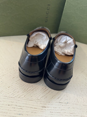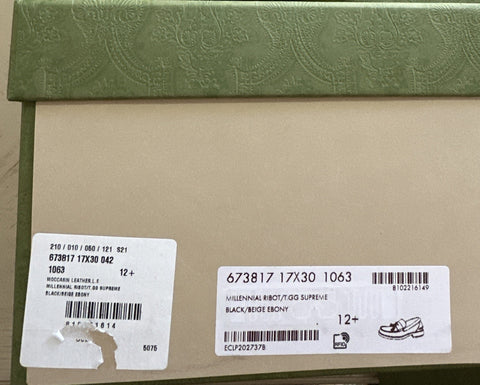 Gucci Mens GG Logo Leather Loafers Shoes Black/Beige 13.5 US/12.5 UK New 673817
