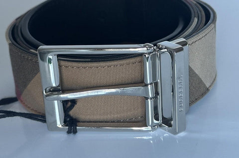 Burberry Reversible Silver Buckle Canvas/Leather Belt 34/85 8084578 IT NWT $440
