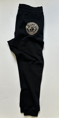 Versace Gold Medusa Printed Black Cotton Activewear Pants XS A89515S NWT $700