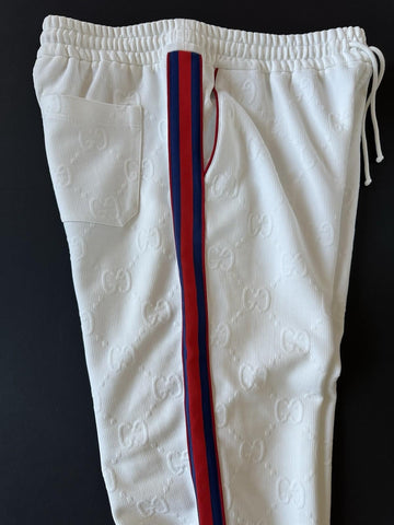 Gucci GG Jacquard Men's White Web Jogging Pants 3XL IT 663569 NWT