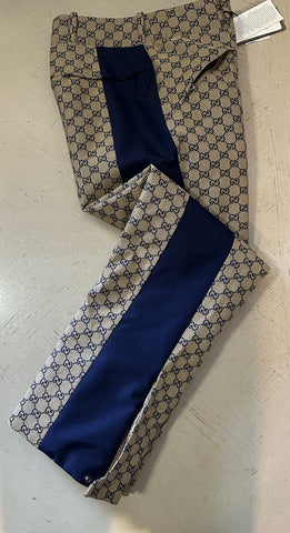New $3300 Gucci Men Canvas GG Print SKI Pants Beige/Navy Size 34 US/50 Eu