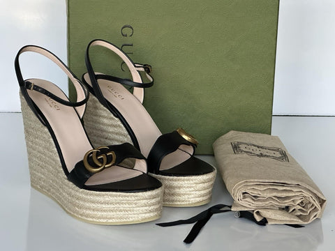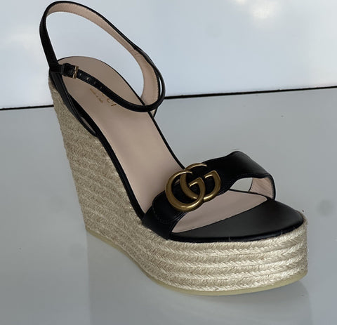Gucci Women's Leather GG Wedge Black Sandals 11.5 US (41.5 Euro) IT 646386 NIB