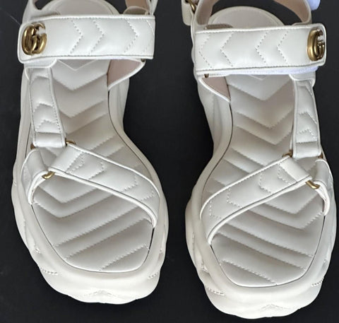 Gucci GG Quilted Open Toe Women’s White Leather Sandals 10 US (40 Eu) 776936 NIB