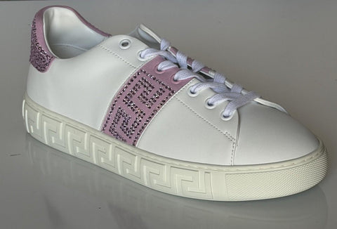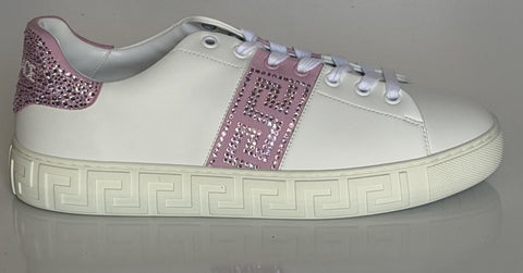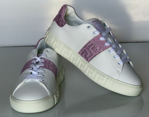 Versace Crystal Greek Women’s White/Pink Leather Sneakers 10 US (40) 1013568 NIB
