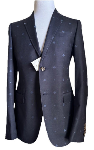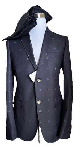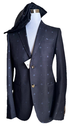NWT $3700 Gucci Men Bee Heart Tone Wool Suit Navy 48R US/58R Eu