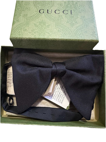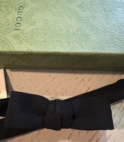 New Gucci Silk Skinny Bow Tie Black Made in Italy