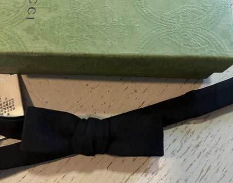 New Gucci Silk Skinny Bow Tie Navy Made in Italy