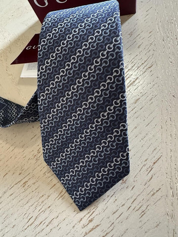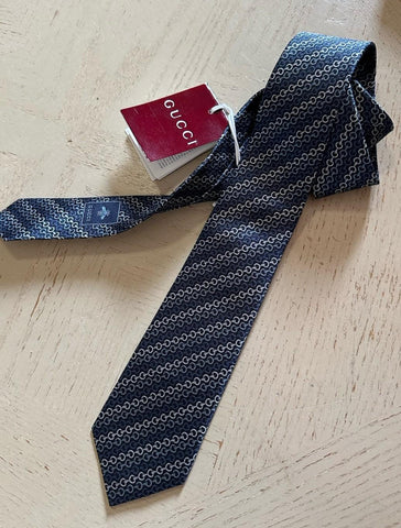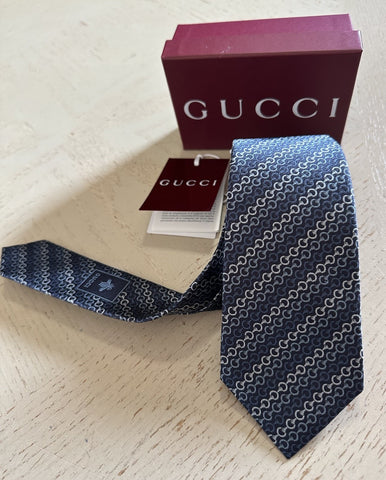 New Gucci Mens Silk Neck Tie Blue made in Italy