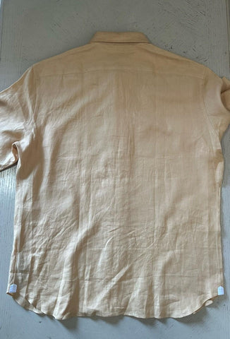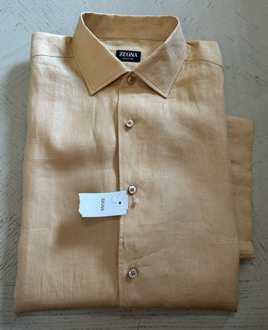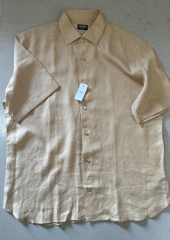 ZEGNA Men Linen Short Sleeve Shirt Yellow Size XL New $780 Italy
